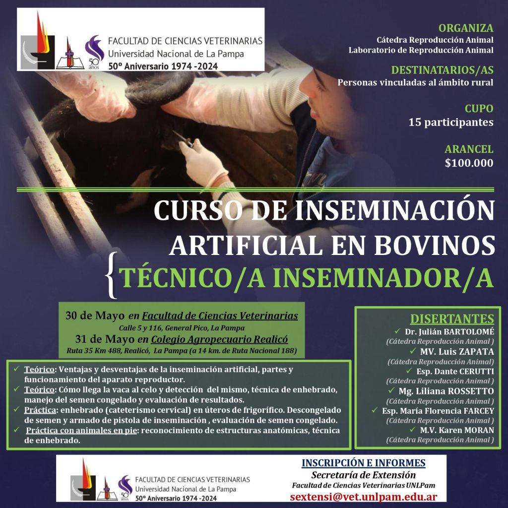- Jueves 30 de mayo del 2024, de 8:00 a 18:00 hs, en instalaciones de la Facultad de Ciencias Veterinarias de la Universidad Nacional de La Pampa.